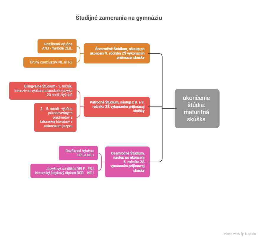 - Päťročné štúdium - bilingválne slovensko-talianske (kód zamerania - 7902 J 74)